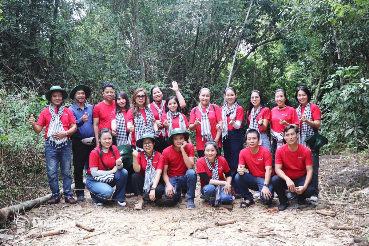 Khách du lịch check-in tại rừng trong khu Căn cứ Tà Thiết, xã Lộc Thành. Ảnh: Ngọc Liên
